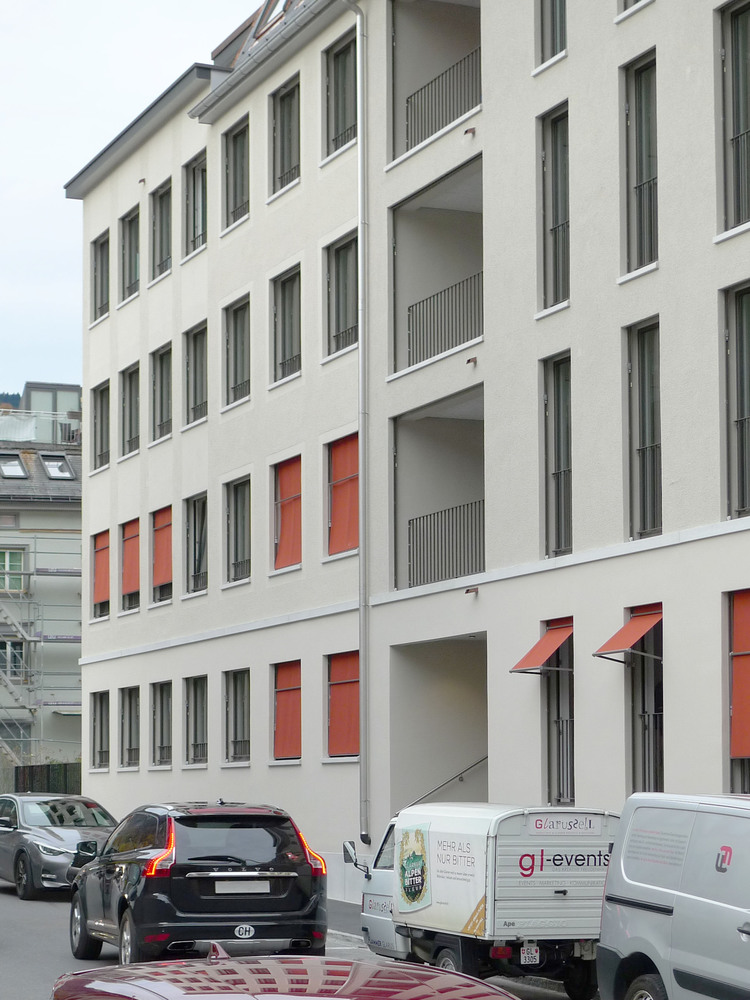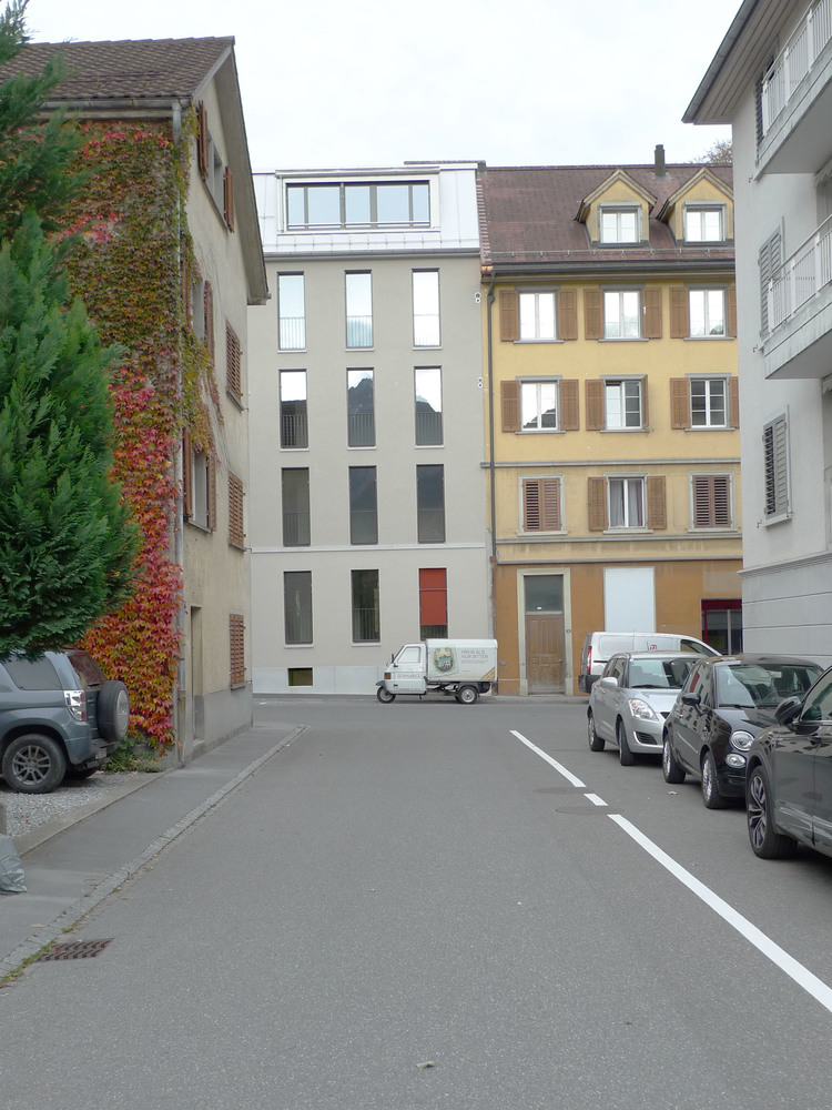Die Lücke, welche seit jeher zwischen dem Burgschulhaus und der Dr. Joachim Heer Strasse vorhanden war konnte durch das Projekt jetzt städtebaulich geschlossen werden. Die ursprünglichen Gebäude auf diesem Areal, wiesen keine schützenswerten Merkmale auf und waren nicht von historischer Bedeutung. Mit Massnahmen wie sie in diesem Projekt umgesetzt wurden, konnte eine mögliche Transformation mit Weiterbauen und Verdichten aufgezeigt werden.