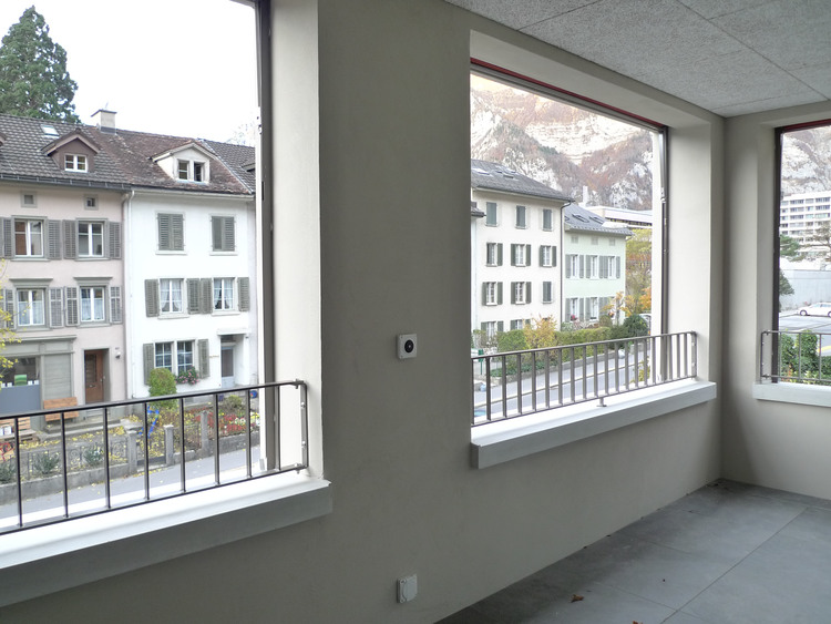 Das Projekt steht am Übergang zu einer anderen Bebauungsstruktur und am Ende der „Ebene“ der Stadt Glarus. Es wird im Blockrandsystem weitergebaut, wie es in den angrenzenden Baufeldern der Fall ist. Ein Weiterführen der Struktur von Glarus, war Ziel des Entwurfs.