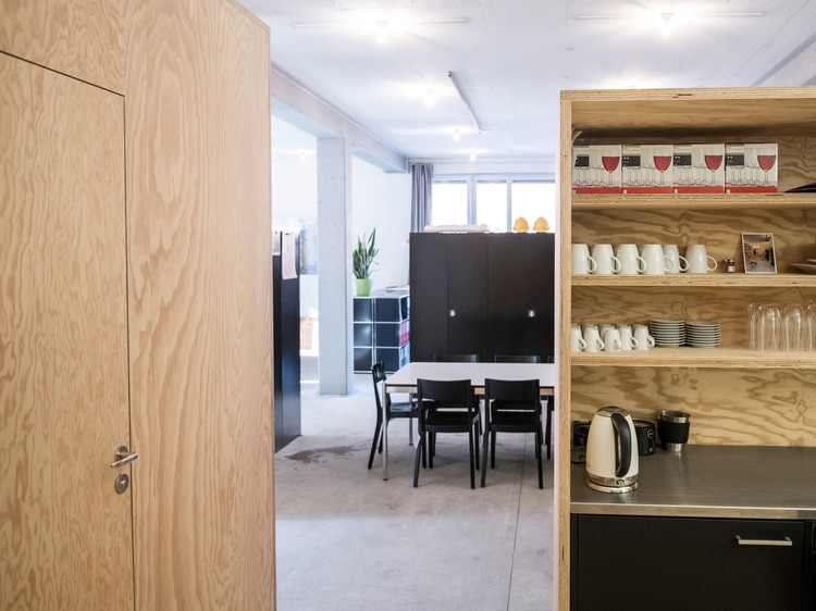 Für die Umnutzung von Industrie- zu Büroräumen wollte der ursprüngliche offene Charakter erhalten bleiben und durch kleine Einbauten ergänzt werden. Eine kleine Teeküche, sanitäre Anlagen und Sitzungszimmer wurden als modulartige Einbauten zwischen die bestehende Struktur eingefügt. Die Gebäudehülle wurde energetisch verbessert und die technischen Anlagen auf heutigen Bürostandard gebracht.