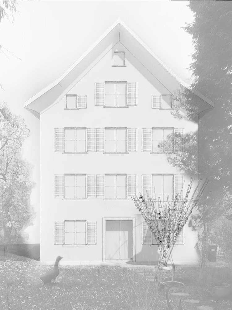 Wenige Schritte vor das Haus, an der Sonne und inmitten der umgebenden Baumwipfel die frische Abendbrise geniessen. Das erledigt meist ein Balkon. Die Studie zu dieser Aufgabe schlägt einen anderen Weg vor. Dies aus Respekt vor dem altehrwürdigen Gebäude und dem Ort in der Kernzone von Glarus.