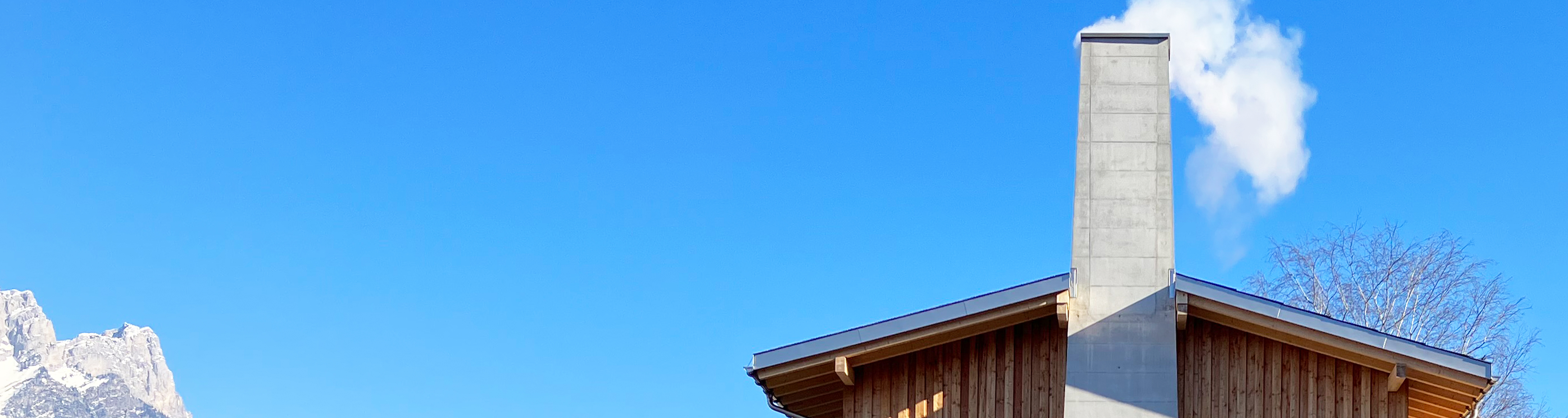 Konstruktiv und der Nutzung nach, ist das Gebäude ein Hybrid. Es ist sowohl Heizung, Büro als auch potenzielles Wohnhaus. Dies spiegelt sich im Ausdruck des Gebäudes wider, in dem es eine nutzungsspezifische Zuordnung offenlässt. In einer ortstypischen Pragmatik wird eine Struktur gebaut, die verschiedene Nutzungen zulässt und sich auf jeden Fall mit dem Ort verbinden soll. Sichtbar sind die technischen Funktionen – der große Kamin, sowie die Photovoltaikanlage, die das Dach bildet.