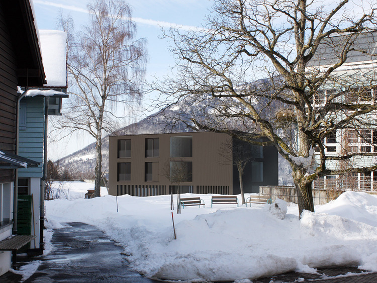 Das Projekt „meer“ bildet an der Hangkante im Nordwesten den Abschluss der Siedlung Lihn. Die vorhandene, sehr heterogene Anlage, bestehend aus Hotellerie, Seminarbauten, Werkstätten und landwirtschaftlichen Bauten, ist über verschiedene Etappen gewachsen. Architektonisch nutzt „meer“ die Hangkante aus um einerseits den Hofraum möglichst gross zu generieren und andererseits um ein kostengünstiges Untergeschoss für die Technik und eine mögliche spätere Zimmererweiterung zu erhaltnen. Die architektonische Haltung des kompakten, einfachen und ruhigen Baukörpers gründet im Verlangen der baulichen Vielfalt im heutigen Lihn einen ruhigen und funktionalen Abschluss zu geben. Das Projekt „meer“ hat im Studienauftrag den 2. Preis erhalten.