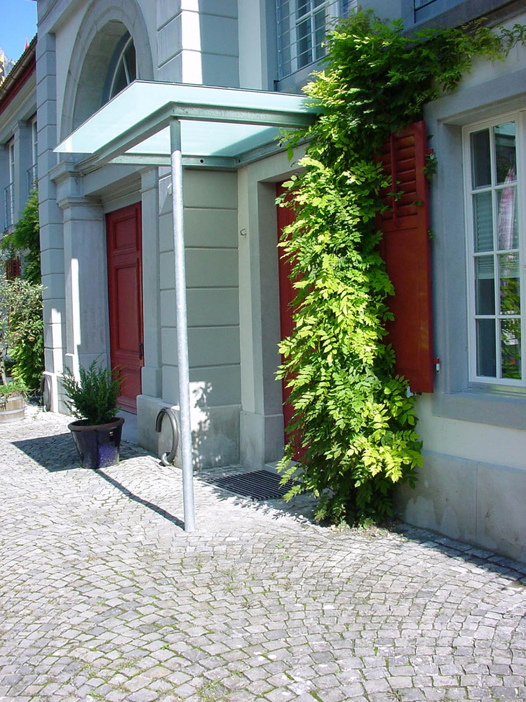 Das ursprüngliche Ökonomiegebäude liegt an der Zaungasse, die den Zaunplatz mit der Schützenhausstrasse verbindet. Es liegt im Gebiet, das vom verheerenden Brand von 1861 verschont blieb. Das zweigeschossige Gebäude steht auf einem markanten Sockel, der den Niveauunterschied von der tiefer liegenden Zaungasse zum südwestlich vorgelagerten Garten überwindet.